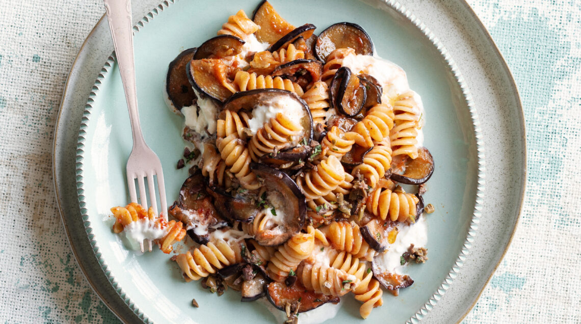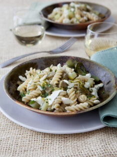 Fusilli con pesto di zucchine, briciole croccanti e olive