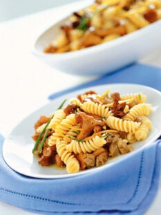 I fusilli giganti con carciofi alla carbonara di prosciutto