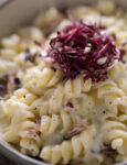 3) Cuoci i fusilli in abbondante acqua salata in ebollizione, scolali al dente e versali nella padella con il condimento. Salta il tutto su fiamma alta per qualche secondo, aggiungi la burrata a fiocchetti e servi subito.