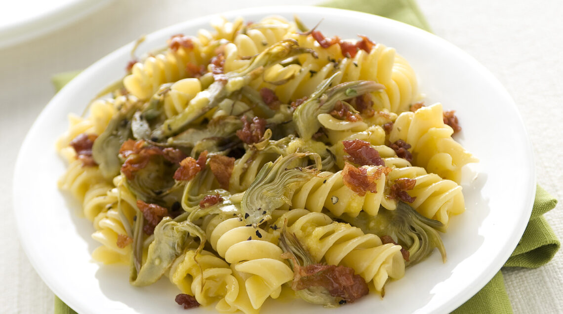 Trovare un vino da abbinare ai nostri fusilli giganti con carciofi non è semplicissimo per via delle caratteristiche organolettiche del carciofo. Il vino giusto dovrebbe essere in grado di riequilibrare gli eccessi biochimici aggressivi, esaltare i profumi e i sapori della pietanza, ma anche di pulire la bocca e rendere piacevole l’abbinamento con il cibo riducendo il più possibile il gusto amarognolo dei carciofi. Pertanto i vini maggiormente consigliati sono senz’altro quelli bianchi, specie se frizzanti o a doppia fermentazione, poiché poveri di tannini. Tra i tanti lo spumante brut Charmat Ribolla Collavini è un’ottima soluzione.