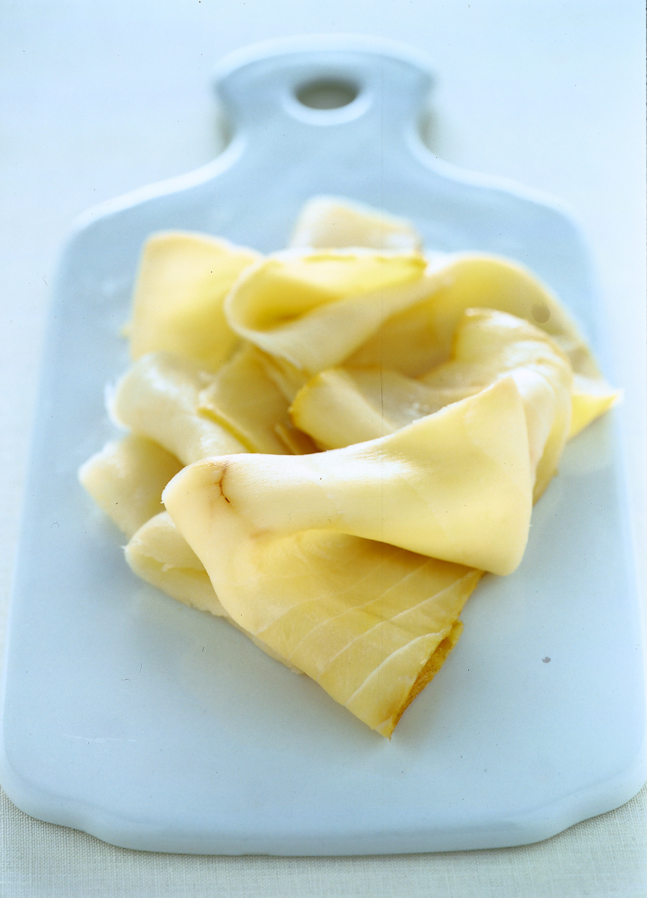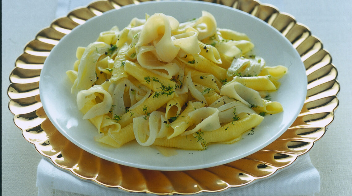 Dopo circa 3-4 minuti aggiungete i finocchi sgocciolati e lasciate cuocere a fuoco medio finché non diventano croccanti, in genere servono circa 2-3 minuti. Aggiustate di sale, unite un cucchiaio di Pernod, lasciatelo evaporare e spegnete. A questo punto tagliate lo storione affumicato a striscioline e tritate le foglioline di finocchio che avevate messo da parte.