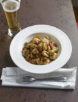 I garganelli nascono in Romagna ai primi del `700 quando una cuoca, non avendo abbastanza ripieno per i cappelletti, passa i quadratini di pasta sul pettine per la tessitura della canapa, arrotolandoli su un fusello di legno, e ottiene tanti maccheroncini rigati. Si acquistano sia secchi sia freschi in tutti i supermercati. Scenografico il timballo a cupola di garganelli e gamberi.