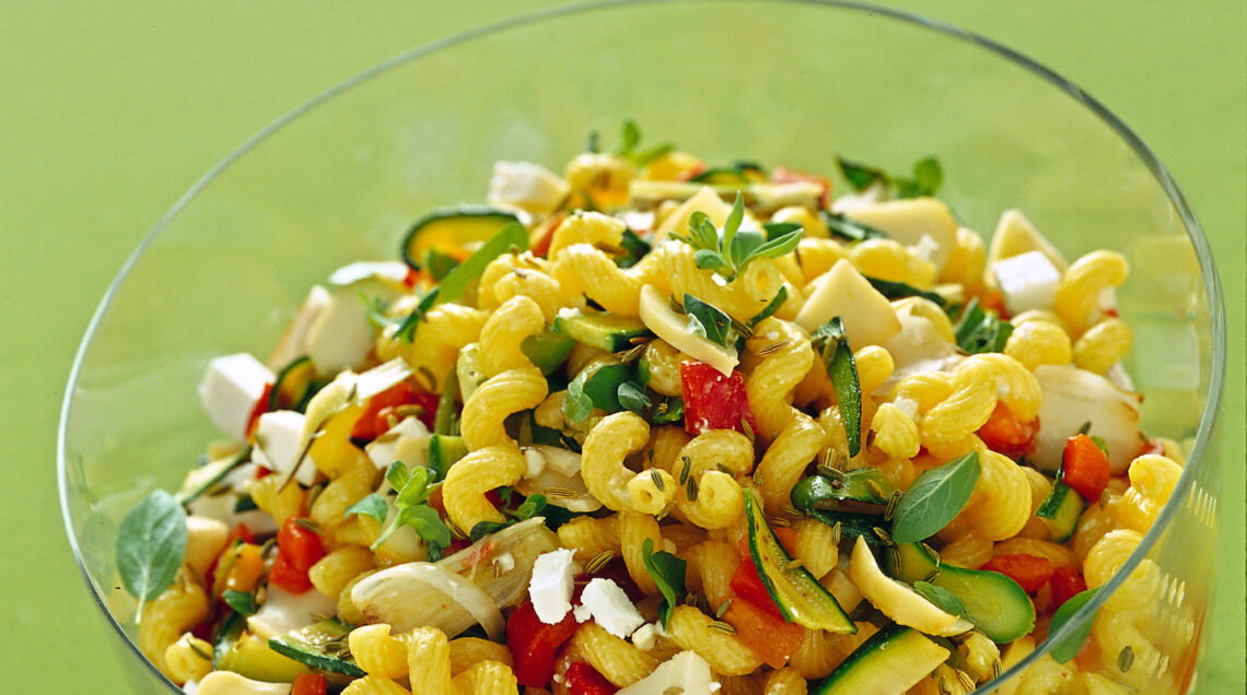 3 Cuocete la pasta al dente, fatela raffreddare e conditela con le verdure a tocchetti, i semi di finocchio, la maggiorana, una presa di sale e 5-6 cucchiai di olio.