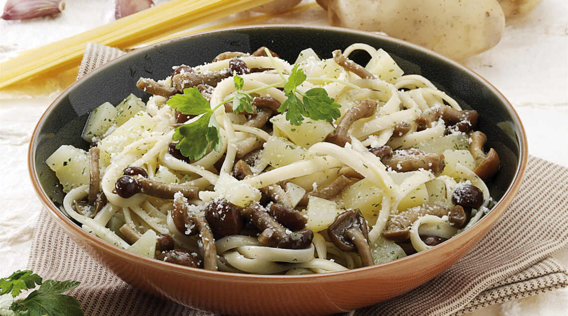 5) Lessa al dente le bavette, scolale, condiscile con il sugo preparato e servile spolverizzate con il parmigiano grattugiato. Prima di portare in tavola le bavette con i chiodini guarniscile, a piacere, con un ciuffo di prezzemolo pulito.