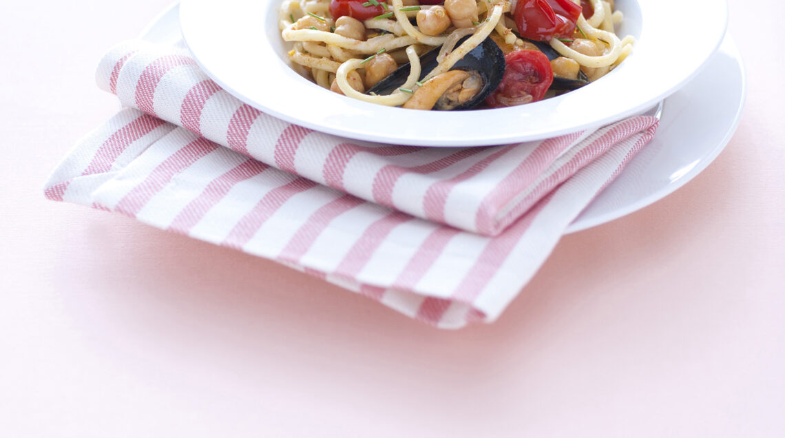 4) Lessate la pasta in acqua bollente salata, scolatela e conditela subito con il sugo preparato e con altro peperoncino. Servite finalmente i troccoli con cozze, ceci e pomodorini.