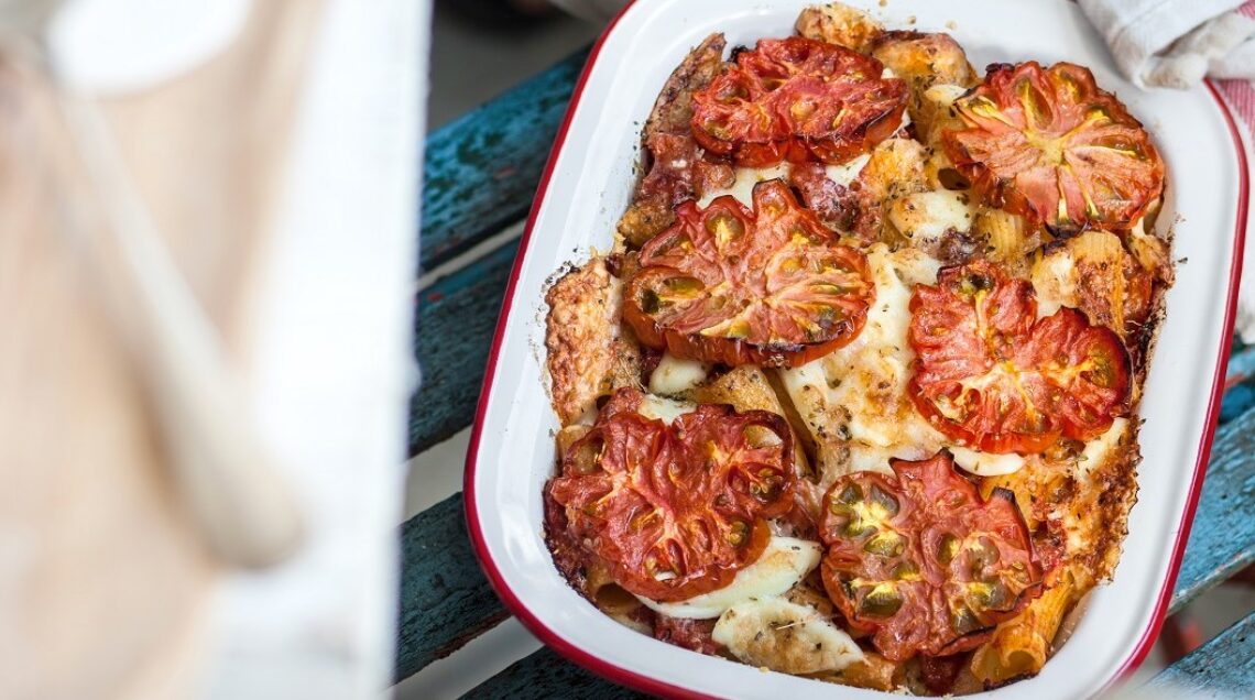 4) Ripetete la sequenza fino a terminare gli ingredienti e completate con le fette di pomodoro tenute da parte. Infornate a 220° per 20 minuti, poi mettete la funzione grill e gratinate per 5 minuti.
