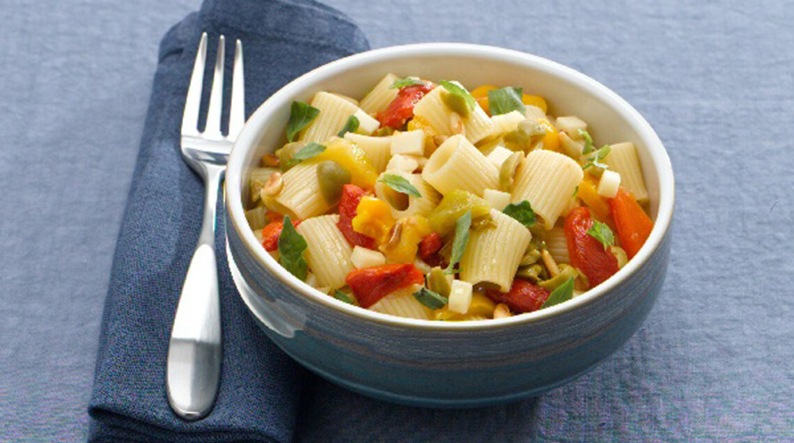 4) Tuffa gli ingredienti appena preparati assieme ai peperoni nella ciotola con la pasta, condisci il tutto con un filo d'olio extravergine, regola di sale e pepe e mescola con cura prima di servire.