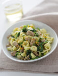 1) Prepara gli ingredienti per le orecchiette. Pulisci i funghi porcini, privandoli della parte terrosa, strofinali bene con un telo inumidito e tagliali a fettine regolari. Fai leggermente dorare gli spicchi d'aglio in un tegame con 4 cucchiai di olio, poi schiaccialo con una forchetta e, dopo qualche istante, eliminalo.