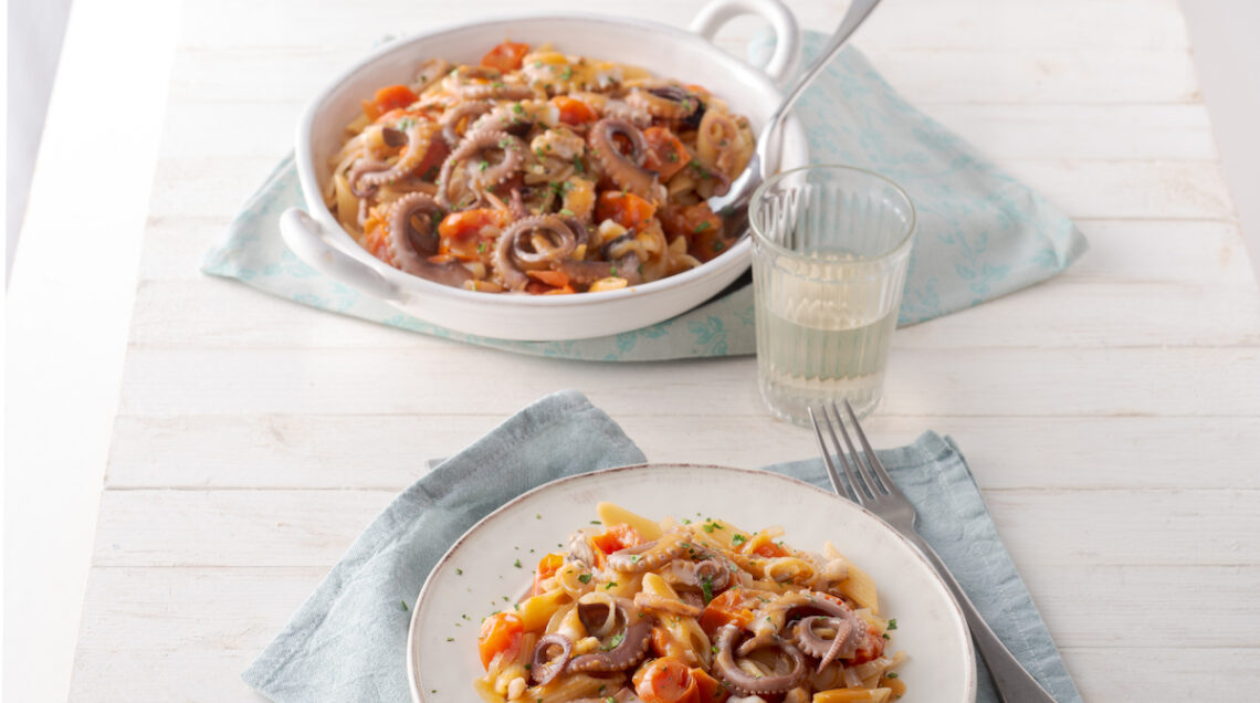 In bianco potete preparare le pappardelle con moscardini al vino, pere, briciole di pane e pecorino, in rosso gli spaghetti con sugo piccante di moscardini e i capunti con sugo di moscardini, speck e peperoni.