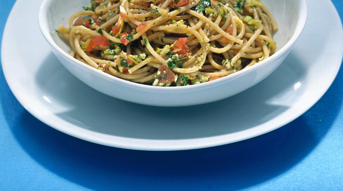 2) Aggiungete, poco alla volta, l’olio e l’origano sbriciolato. Scottate i pomodori in acqua bollente per un minuto, successivamente sbucciate e tritate la polpa. Mescolate insieme al pesto e fate riposare al fresco fino a quando non servite.
