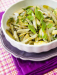 2) Spunta i fagiolini eliminando l'eventuale filamento, lavali e tuffali in una pentola d'acqua bollente salata, aspetta che riprenda l'ebollizione, calcola 3-4 minuti di cottura e poi unisci gli spaghetti.