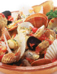 3) Fai soffriggere l'aglio ed i peperoncini con un filo d'olio all'interno di una padella capiente. Una volta insaporito adeguatamente l'olio, elimina l'aglio e i peperoncini ed unisci tutti i pomodori. Aggiusta di sale e pepe, profuma con il prezzemolo ed aggiungi i frutti di mare ed i crostacei (vongole, cozze, tartufi di mare, canocchie, scampi ed i gamberi rimasti).