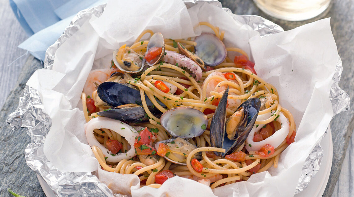Un primo piatto succulento al sughetto di pomodoro e ricco di pesce. Da gustare con gli amici