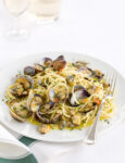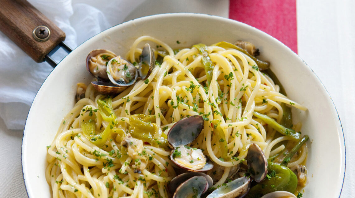 4) Unisci le vongole sgusciate e distribuisci la pasta nei piatti. Completa gli spaghetti alle vongole veraci e friarelli con le vongole intere, il prezzemolo tritato e un filo di olio.
