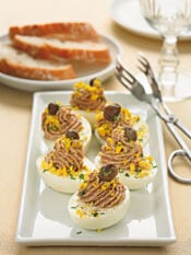 1  Spuntate le melanzane e pelatele, conservando la pelle per la decorazione. Tagliatele a dadini e doratele in padella con 4 cucchiai di olio d'oliva e un pizzico di sale. Scottate i pomodori secchi in abbondante acqua bollente per eliminare l'eccesso di sale, scolateli e fateli asciugare sulla carta da cucina.