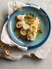 1) Per prima cosa elimina la pelle, sbriciolate le salamelle e mettile da parte; pela la cipolla, tagliala a spicchi sottili e falla stufare in una padella con il burro e un cucchiaio di acqua per 2-3 minuti.