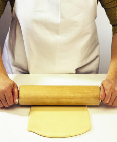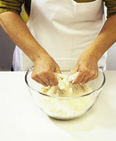 2) Impasta velocemente su un piano da lavoro leggermente infarinato, forma un panetto e lascialo riposare in frigorifero per mezz’ora.