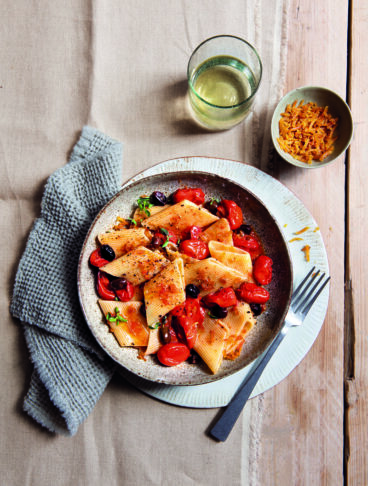 Speciale il formato di pasta, speciale il condimento green, con zucchine e olive. Gocce di feta per contrastare la dolcezza del primo boccone