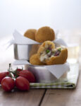 3) Cuoci il riso e prepara il composto per gli arancini. Appassisci lo scalogno tritato in 3-4 cucchiai di olio extravergine di oliva, versa il riso, fallo tostare, bagna con il vino bianco rimasto e lascia evaporare. Aggiungi 2 mestoli di brodo vegetale bollente e cuoci per circa 15 minuti, aggiungendo altro brodo al bisogno, man mano che il riso lo assorbe. Togli dal fuoco e manteca il pecorino dolce grattugiato. Lascia raffreddare e incorpora un uovo.
