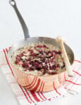 4) Togli il risotto dal fuoco e incorpora 50 g di grana; infine regola di sale e aggiungi pepe quanto basta.