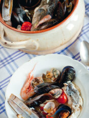 3) Aggiungi il riso, lascialo tostare per 2 minuti, sfumalo con il vino bianco e prosegui la cottura, bagnando con il brodo caldo poco alla volta e mescolando, finché il riso sarà al dente.