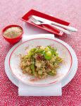 1) Per realizzare la ricetta del riso integrale strapazzato al forno con le verdure innanzitutto cuoci il riso in abbondante acqua salata per il tempo indicato sulla confezione. Scolalo, condiscilo in una terrina con un filo d'olio e tienilo da parte.