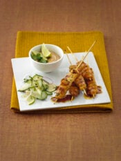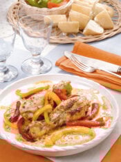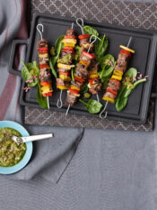 1) Per preparare il pesto di zucchine inizia a tagliarle e disponile, senza sbucciarle, in un cestello per la cottura a vapore con all'interno la cipolla e gli spicchi d'aglio (in camicia, non sbucciarli!).