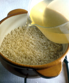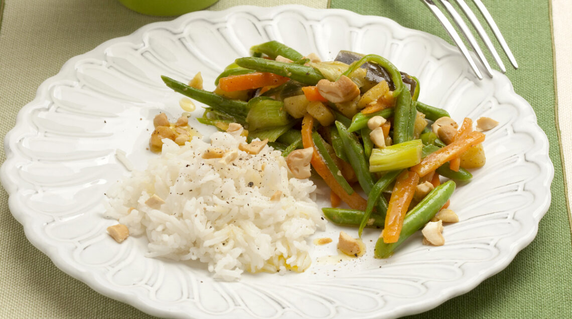 Questa ricetta, adatta a essere servita come primo o piatto unico, ne unisce in realtà due: la prima è quella del riso preparato con la particolare cottura pilaf, la seconda è quella delle verdure insaporite con il curry, miscela di spezie di origine indiana.
