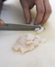 Sistemate al centro le capesante, spolverizzate al momento con un pizzico di liquirizia e i microvegetali. Completate con il succo di 1/2 limone lungo il bordo del piatto.