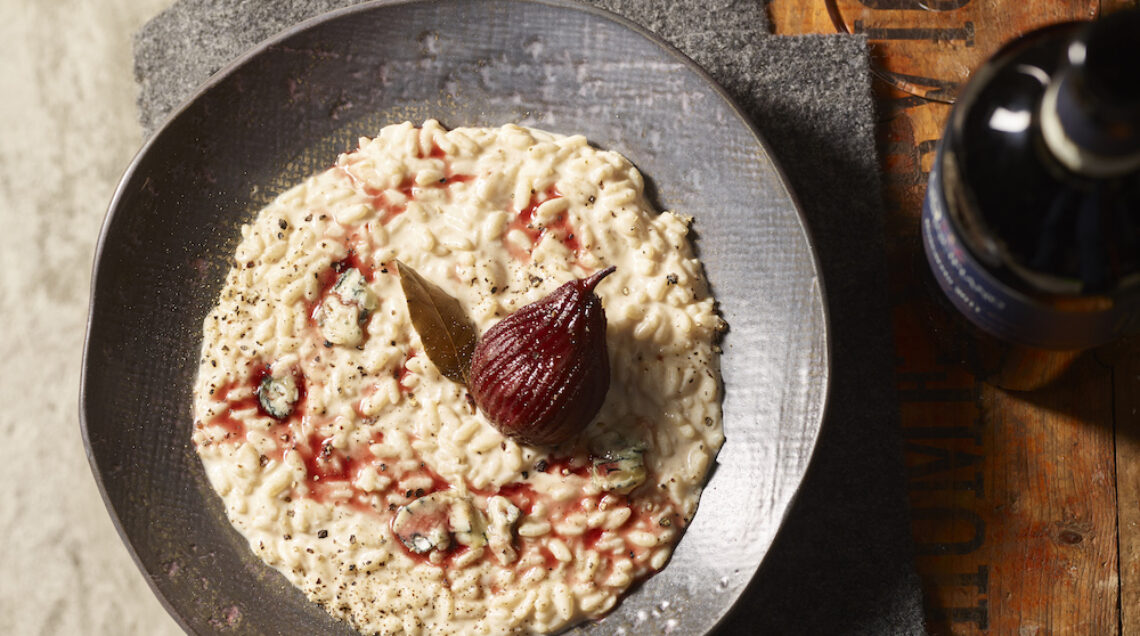 3) Quando il riso risulta al dente, spegnete il fuoco e mantecatelo: unite il mascarpone e 80 g di Castelmagno sbriciolato e amalgamate il tutto. Lasciatelo riposare coperto per 2 minuti, poi suddividete il riso nei piatti, cospargetelo con il Castelmagno rimasto a scagliette e servitelo con una pera e il suo fondo di cottura.