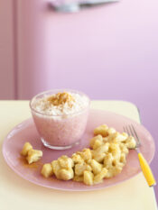 La nota profumata del risotto, sfumato al vino e cotto con brodo e pomodoro, è racchiusa nella crema di basilico. Ma la dolcezza della burrata ruba la scena a un primo di per sé delizioso