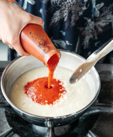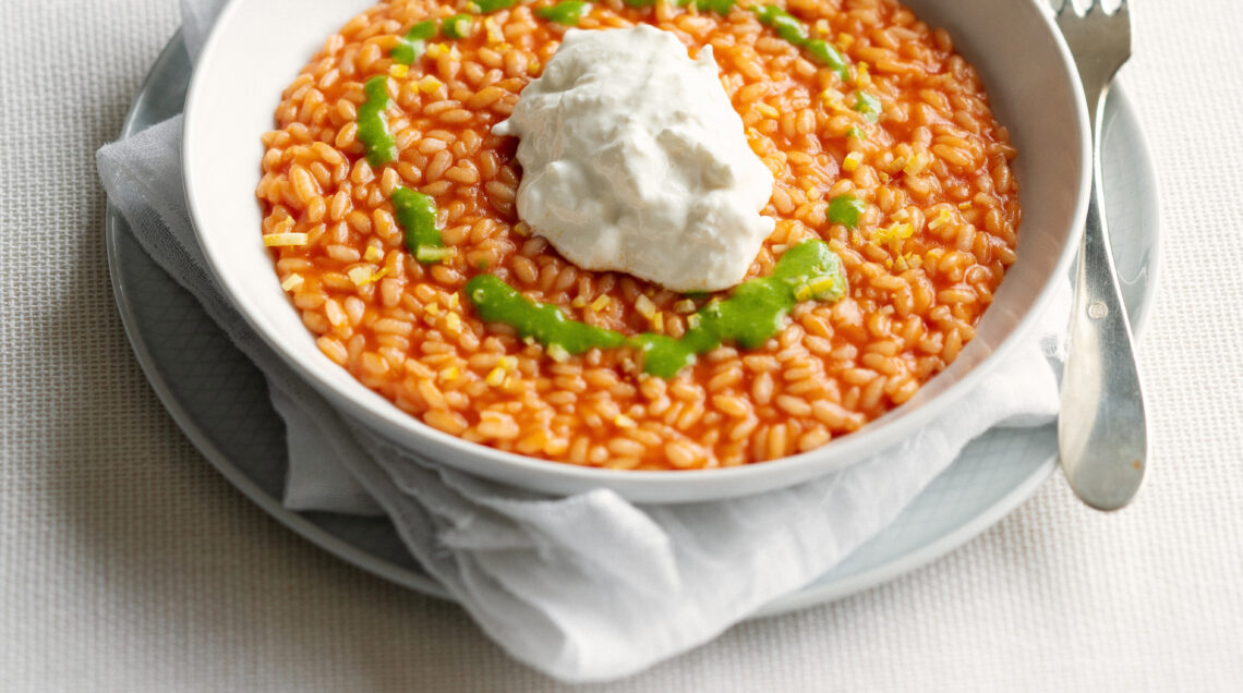 Verso metà cottura aggiungete la passata di pomodoro, quindi altro brodo, e continuate a mescolare. Il riso S. Andrea cuoce in 14 minuti a partire da quando versate il brodo.