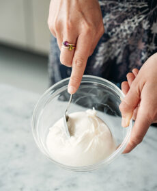 Distribuite il risotto nei piatti, aggiungete sopra un cucchiaio di burrata, un giro di pesto e terminate con un pizzico di scorza di limone.