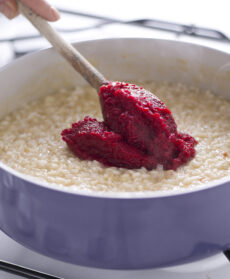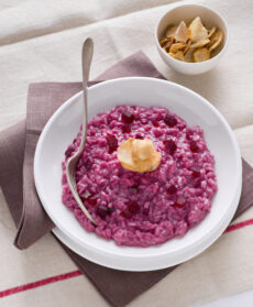 Accattivante nel colore, sorprende al primo assaggio per la delicatezza e la dolcezza della barbabietola; un risotto a regola d'arte, preparato con Carnaroli e brodo e mantecato, a sorpresa, con la crescenza. Perfetto anche in caso di ospiti.