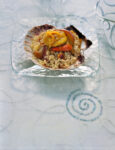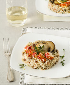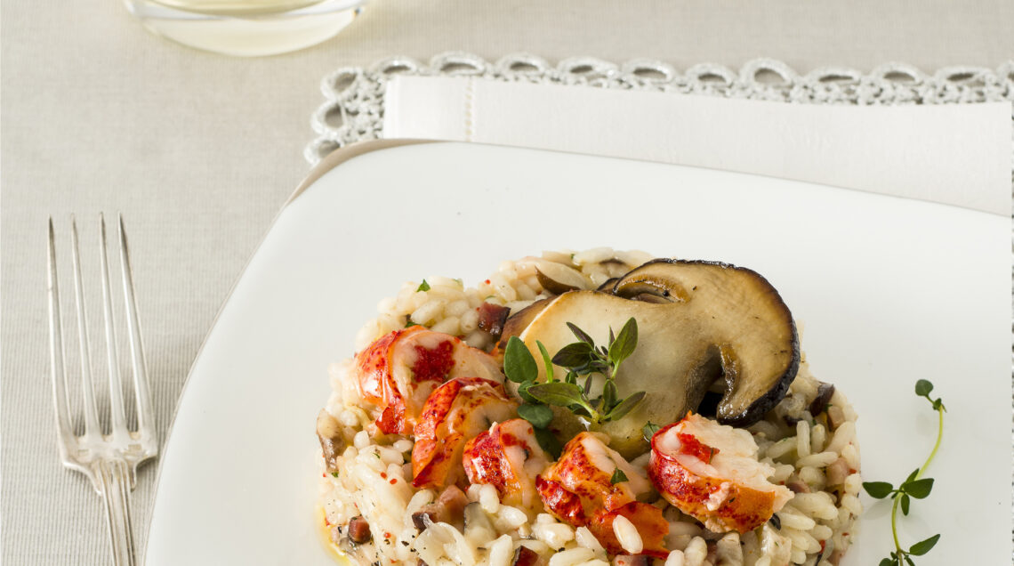 4) Servi il risotto all'astice e funghi porcini guarnendolo con la polpa di astice e le fettine di porcino tenute da parte ripassate in padella con il burro rimasto.