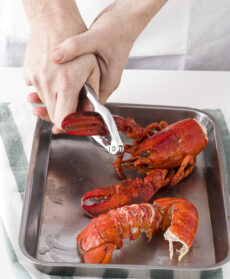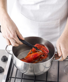 1) Scotta l'astice in acqua salata per 10 minuti e ricava la polpa.