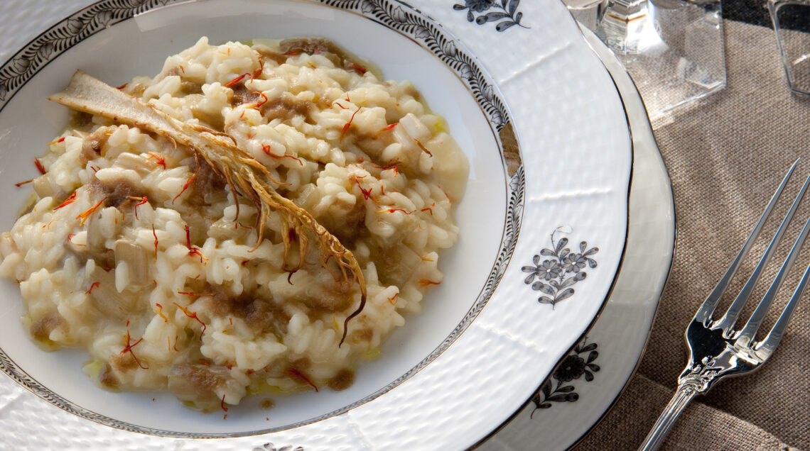 3) Sbuccia la cipolla, tritala finemente e falla soffriggere con 2 cucchiai di olio; sala, aggiungi i dadini di cardo e saltali brevemente. Unisci il riso, tostalo qualche minuto e sfuma con il vino. Quindi aggiungi il brodo. Qualche minuto prima che il riso sia arrivato a cottura, incorpora i petali di calendula. A fine cottura manteca con la panna acida e regola di sale. Distribuisci nei piatti il risotto ai cardi e completa con la bagna cauda.