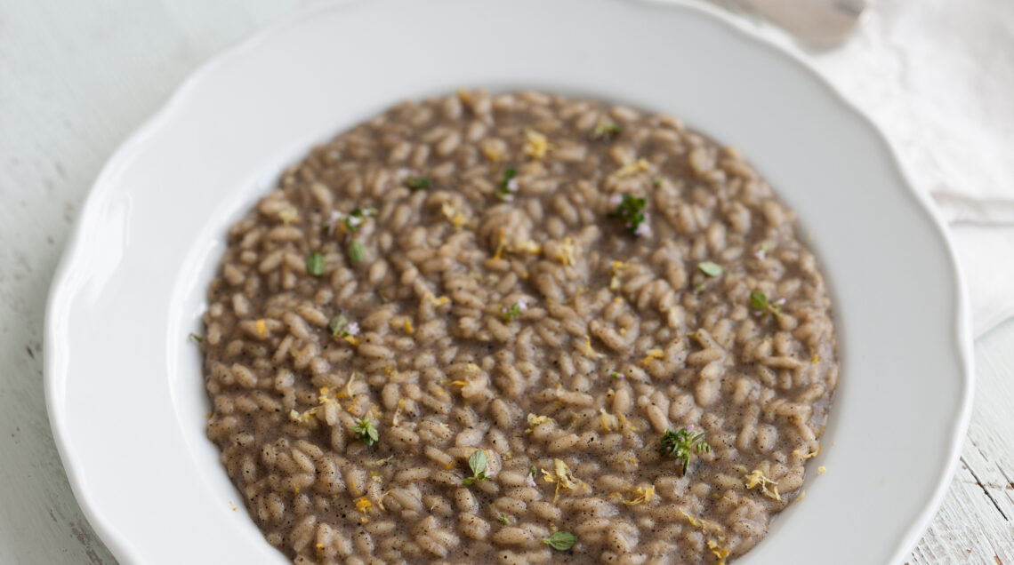 Distribuisci il risotto nei piatti e guarnisci con una grattugiata di scorza di limone ed il timo. Il tuo risotto alle cipolle bruciate, limone e timo è pronto per essere servito!
