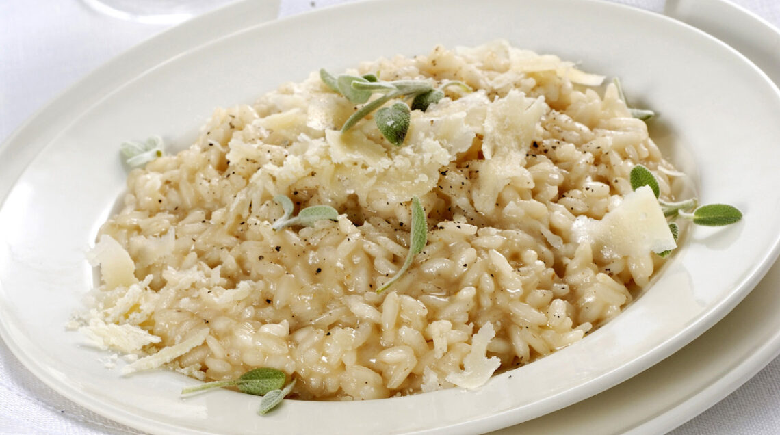 Il risotto alla parmigiana è, in un certo senso, la base di tutti i risotti. Questa versione ha un gusto intenso grazie all’utilizzo di un brodo ristretto arricchito con verdure odorose ed erbe aromatiche.