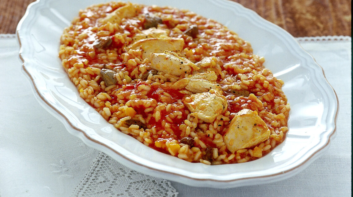 2) Unisci il pollo, il fegatino e il durello e falli rosolare per 2-3 minuti. Aggiungi la salsa di pomodoro e 3 dl di brodo bollente. Copri la casseruola con un coperchio e prosegui la cottura del condimento delrisotto per 25 minuti.