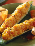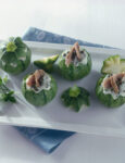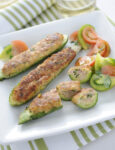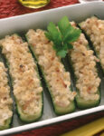 1) Lava le zucchine, tagliane la calotta, privale della polpa, tritala e tienila da parte; scotta le zucchine e le loro calottine per 3-4 minuti in acqua bollente salata, scola e mettile ad asciugare capovolte su una gratella.
