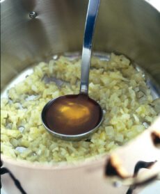 Inizia a cucinare la ricetta degli ubriachi lasciando sciogliere in una casseruola 30 g di burro. Prepara un trito di aglio e cipolla e fallo rosolare nel burro per 2-3 minuti.
