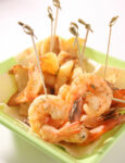 3) Sbucciate le patate, tagliatele a fettine di 2-3 mm di spessore e scottatele per 2 minuti in acqua bollente salata. Tagliate i pomodori a rondelle e lasciateli sgocciolare in uno scolapasta, in modo che perdano l'acqua di vegetazione. Spellate e affettate finemente la cipolla.