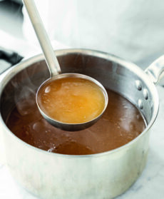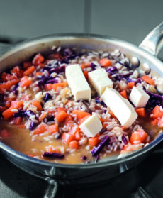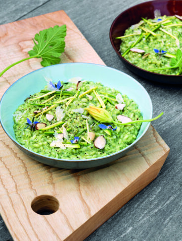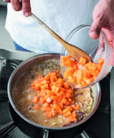 Preparate il brodo con le verdure pulite e tagliate e 80 g di prezzemolo intero. Cuocetele in abbondante acqua salata per circa un'ora poi filtrate: si può preparare anche la sera prima e conservare in frigorifero. Tagliate il burro a cubetti e congelatelo (aiuterà la mantecatura del risotto).
