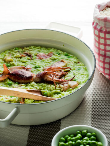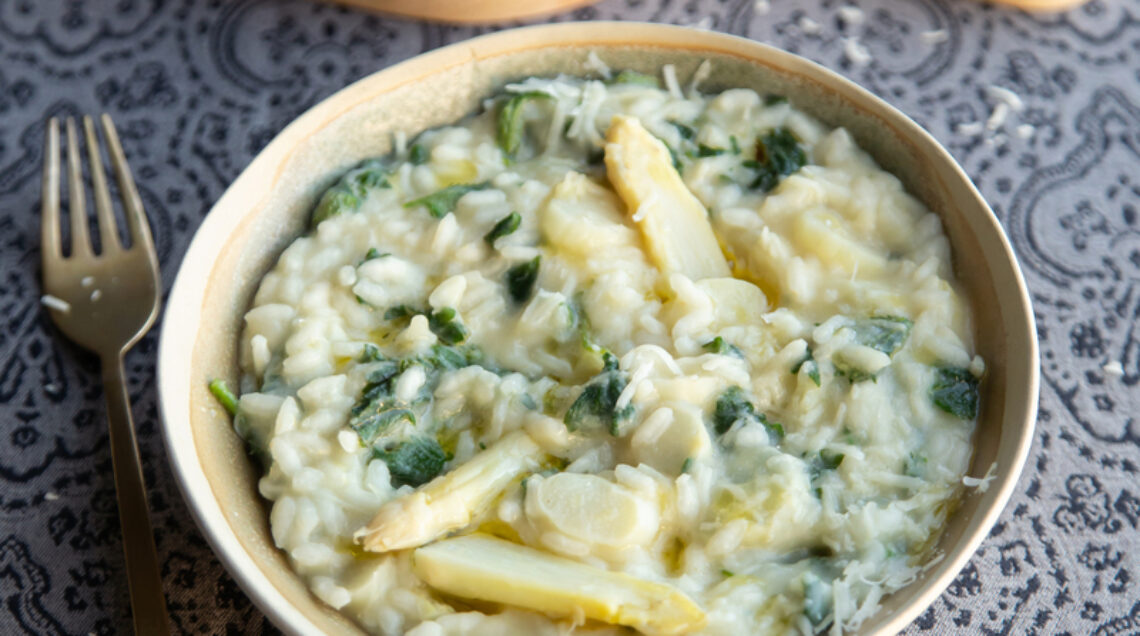Ospiti speciali per questo risotto all'onda: ortica asparagi e montasio ne fanno un capolavoro da gustare anche con gli amici