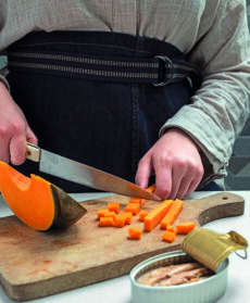 Private la zucca della scorza ed eventuali tracce di semi e filamenti, poi tagliatela a cubetti. Sbucciate la cipolla e tritatela.
