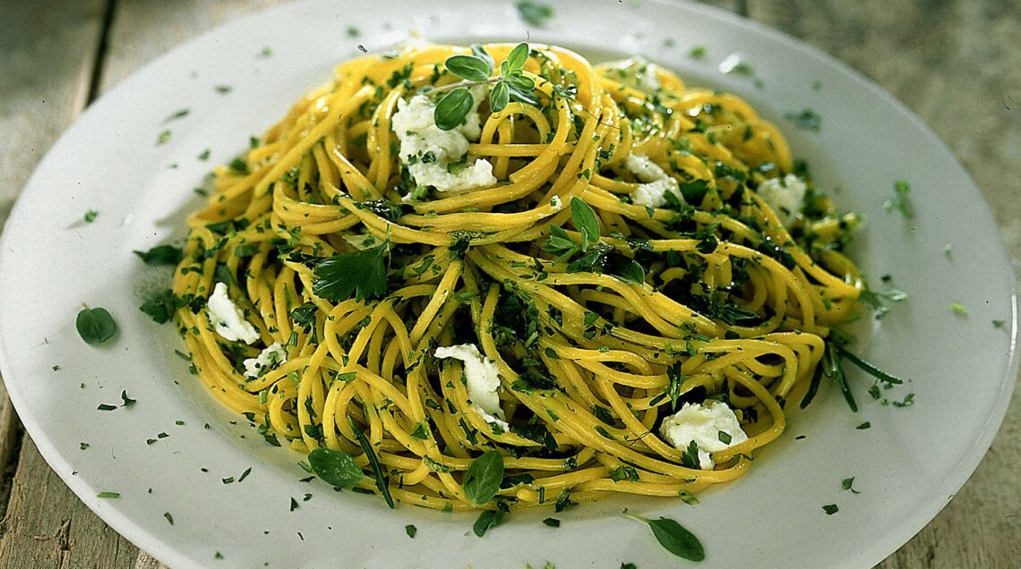 4) Scolate la pasta al dente, lasciandola un po' umida, versatela subito nella padella con il condimento preparato e fatela insaporire per qualche istante a fuoco vivace, sempre mescolando. Distribuite infine gli spaghetti in 4 piatti individuali e serviteli subito ben caldi, completando, se vi piace, con erbe aromatiche fresche e robiola a fiocchetti.