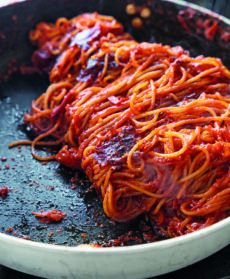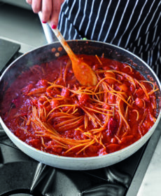 L'abbondanza di peperoncino nel sughetto di pomodoro giustifica il nome di questo primo piatto barese che profuma di aglio