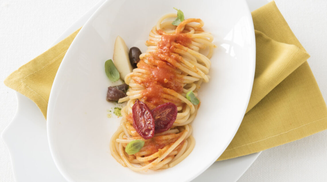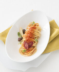 Nascono così questi "Spaghetti Pizza Margherita", presentati a Fuorisalone 2014 nella versione che qui riportiamo, che vedono fra gli ingredienti provola affumicata, mozzarella, acciughe e la buccia di lime. Un piatto che racchiude in sé due delle eccellenze gastronomiche italiane più apprezzate, tanto in patria quanto all'estero, per regalare al palato un'esperienza unica di sapori e profumi che sanno di casa.