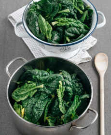 Lavate gli spinaci, sgrondateli e lessateli con la sola acqua rimasta aderente alle foglie.